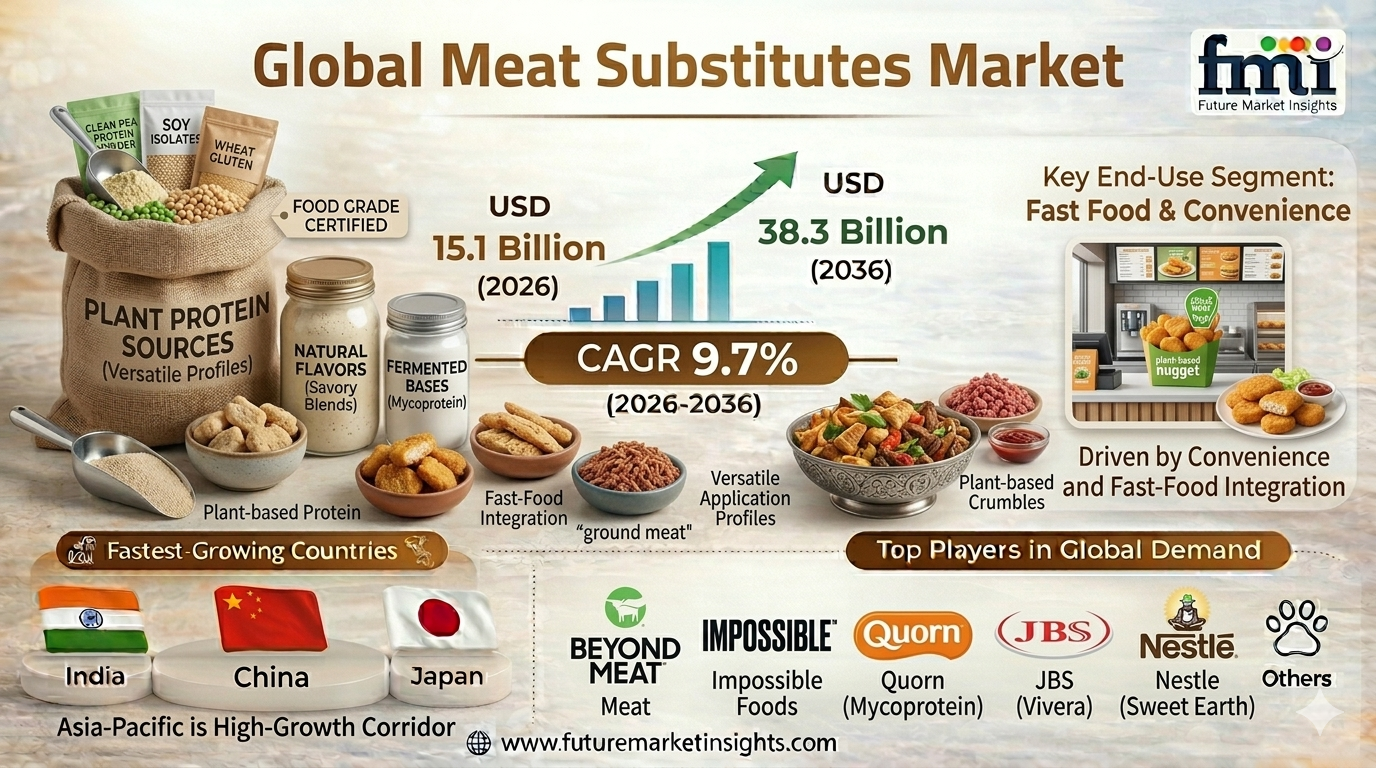 The Meat Substitutes Market is entering a decisive transformation phase as shifting consumer preferences, sustainability concerns, and the rising demand for plant-based protein alternatives reshape the global food industry. Valued at a significant level in 2025, the market is projected to grow steadily in 2026 and expand substantially by 2036, reflecting strong momentum as consumers increasingly adopt plant-based diets and alternative protein sources.