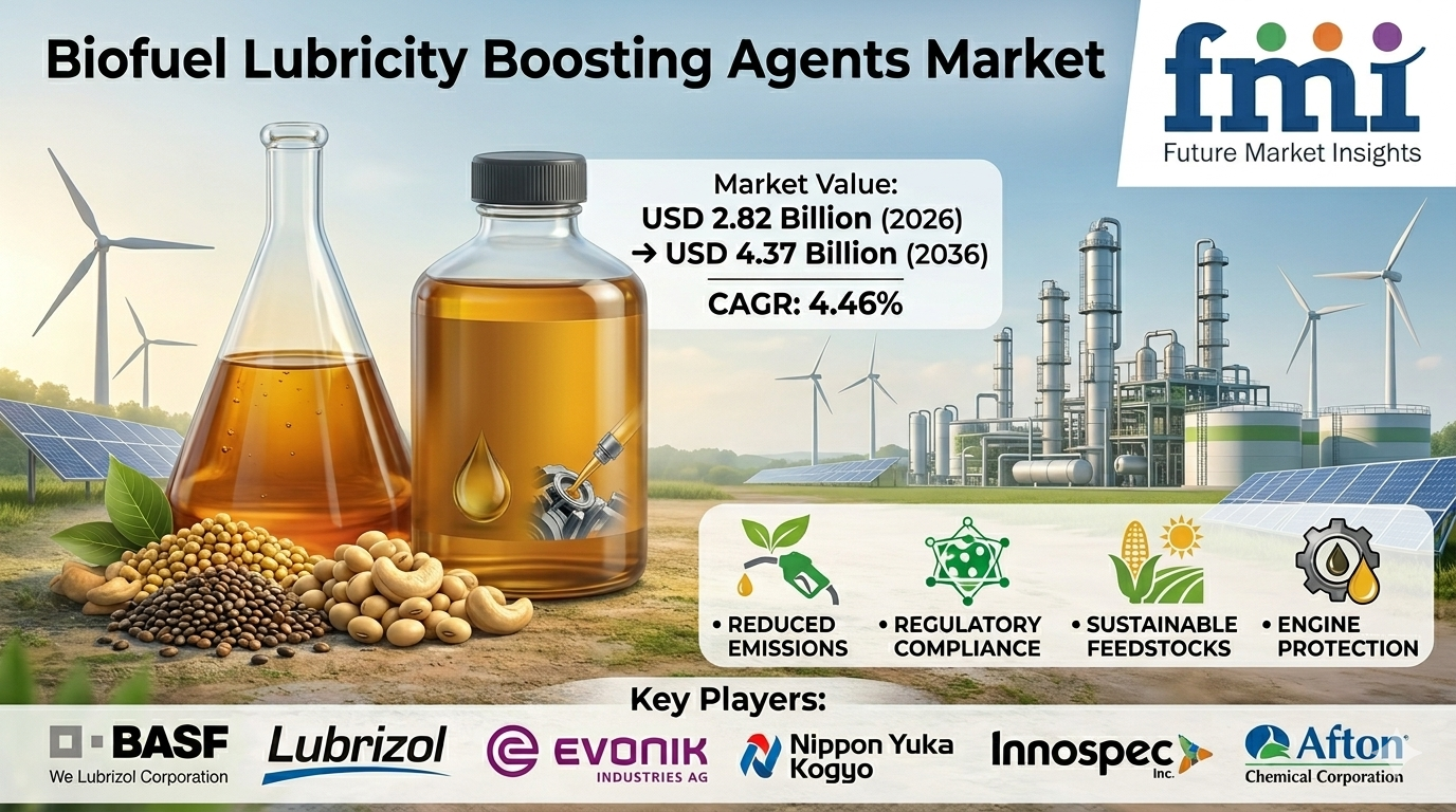 The global biofuel lubricity boosting agents market is entering a phase of structural expansion, projected to grow from USD 2.82 billion in 2026 to USD 4.37 billion by 2036, registering a CAGR of 4.46%. The growth reflects a decisive shift in fuel standards worldwide, where lubricity-enhancing additives are no longer optional performance tools but essential components for regulatory compliance and engine protection.
