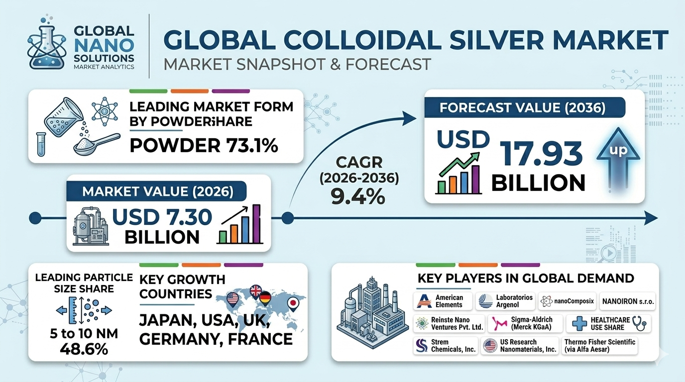 By 2036, colloidal silver will continue to expand across healthcare, industrial, and consumer applications. Growth will be driven by structured procurement practices, particle-size control, multi-end-use adoption, and consistent quality standards that align with modern regulatory and performance expectations.